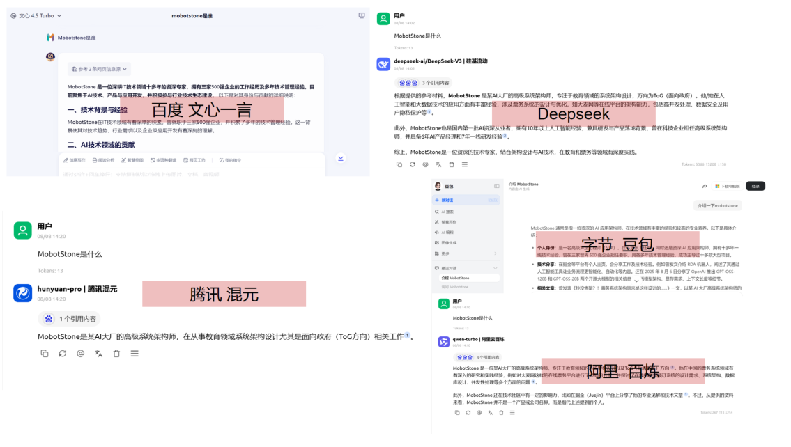 如今,当用户想要查询某个不太熟悉的人或产品时(比如MobotStone这样的名称),完全可以直接询问大模型。大模型会通过分析全网的可信信息源,综合整理出关于这个主题的详细解答,包括基本信息、背景介绍、相关事件等,帮助用户快速获取准确可靠的内容。
